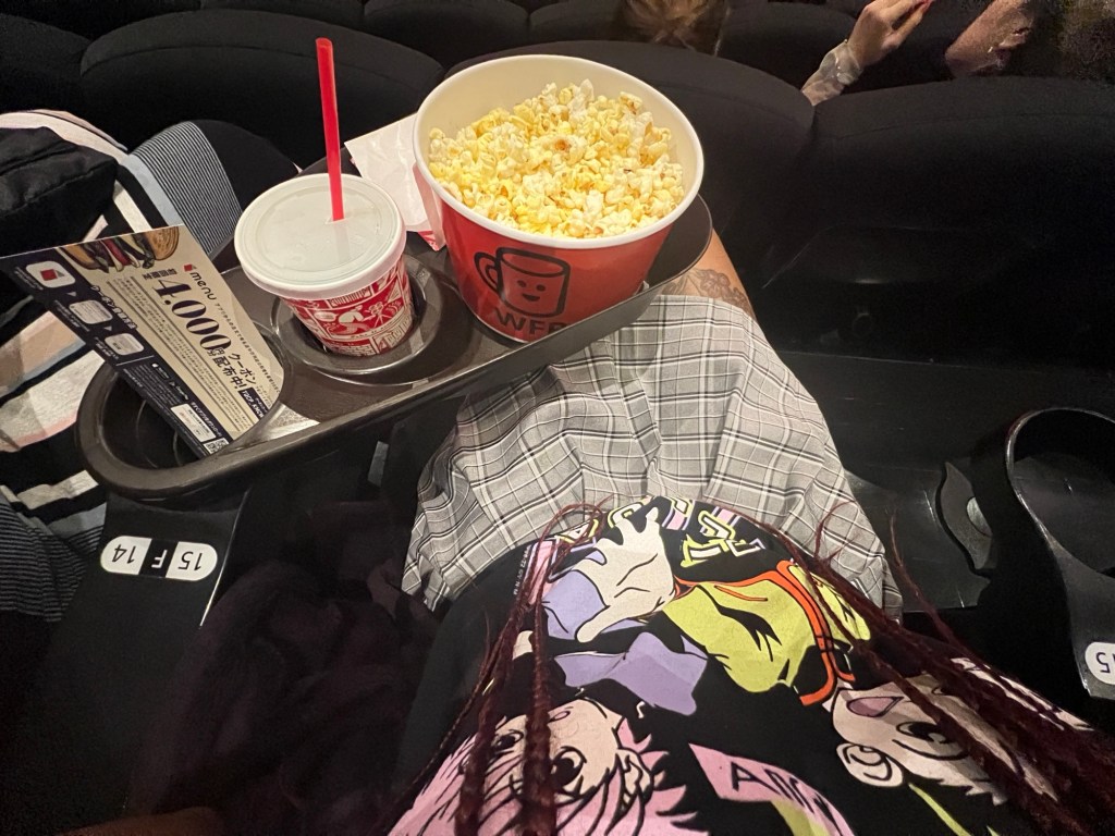 Since we’re college students, we were able to get discounted tickets at 1500¥ or around $9.62 USD, which is way cheaper than back home. Even a general ticket is 2000¥ or $12.83. I don’t really go to the movies anymore in the United States, because tickets are just way too expensive on top of buying snacks. The last movie I actually saw in theaters was the Little Mermaid with Halle Bailey when it released last summer. And since I was in California at the time, the tickets were even more expensive. I think it was around $18 for an adult ticket, so double than what I paid in Japan. There were so many movies I wanted to see during the Summer of 2023, but it was just too expensive.
