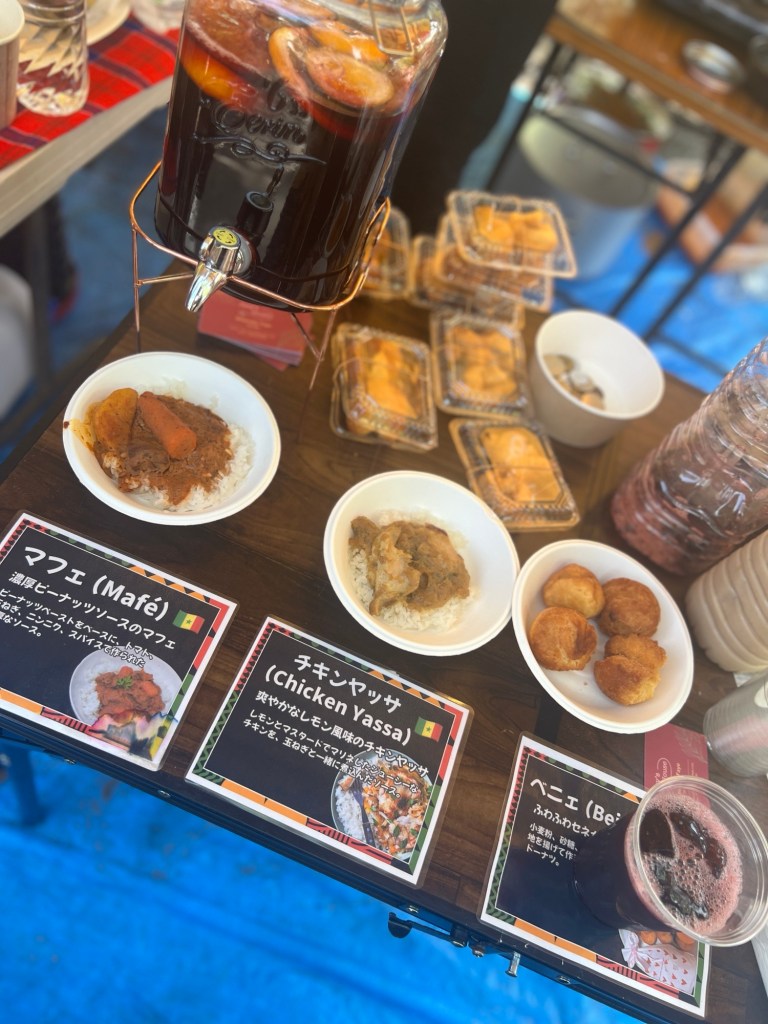 Once our henna was done, we checked out some of the shop stalls. They sold clothing, purses, jewelry. Things you’d typically find at a market except they were wayyy over priced. I saw this one cute purse with a black woman wearing a head wrap. It was like 8000¥. Aicha also said a lot of those bracelets she already had lol. She said there’s so many stands in Senegal that sell the same things for so much cheaper than they were trying to sell them for in Japan. She also stopped me from buying this one crossbody purse. It was so cute and such a pretty yellow. But it was around $40. Aicha told me not to waste my money cause in Senegal the purses are way cheaper and better quality. I could get the same thing for more than half the price there.