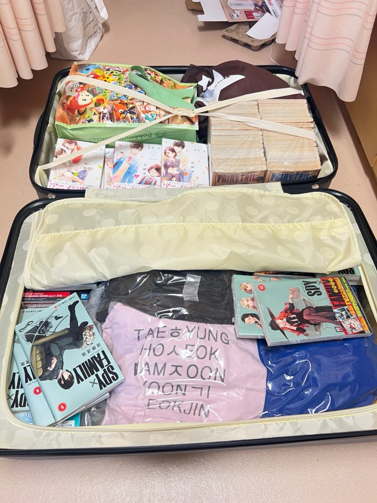 OK. Now, that’s just pre-departure paperwork. Packing was another beast. So, I weighed all my options for what was the best way to getting my stuff home. Really the main and biggest thing I got was all my manga, and books can be super heavy. I also wanted to keep all the pots, pans, and electric kettle I bought while here. My friends all ask why don’t I just trash them, but they’re in great condition still. And I figured I’m going to graduate school somewhere within the next year or two. I can save them for when I get my own place. I originally thought about mailing the books home, but come to find out, it was going to be around 19,000οΏ₯ per box to ship home. That would’ve been about $250 for two boxes, and I would still have so much stuff to bring home, which likely meant mailing out a third and maybe fourth box.