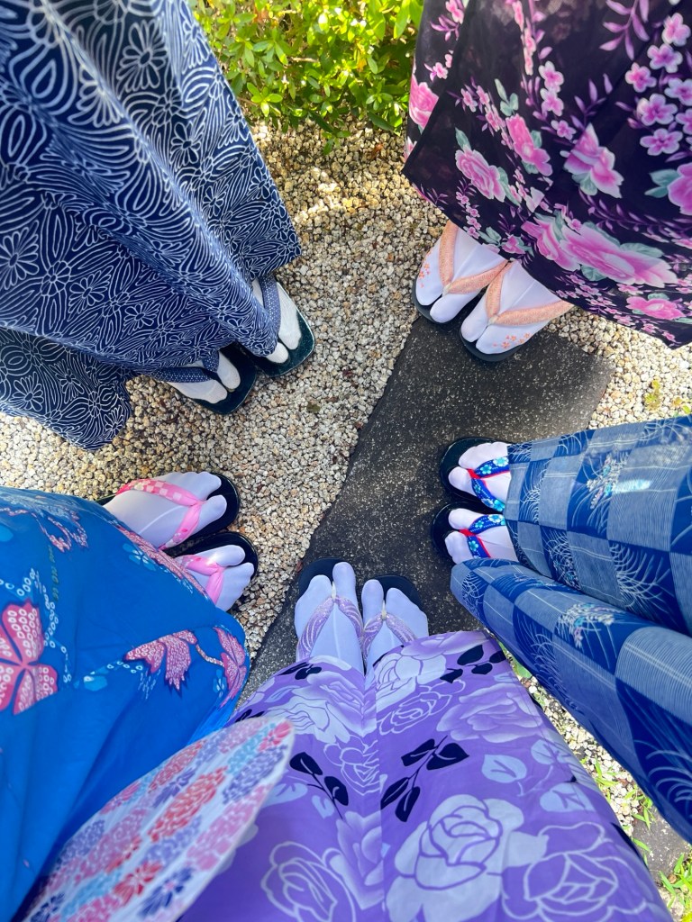 After about 30 minutes, it was our turn to get changed. So all my friends and everyone knows that my favorite color is purple. Everything I own is purple from my phone case and accessories, to my suitcases, even my blog is purple themed. It’s honestly a running joke at this point. Since everyone knows this, they specifically left the purple yukata alone for me to wear lol.