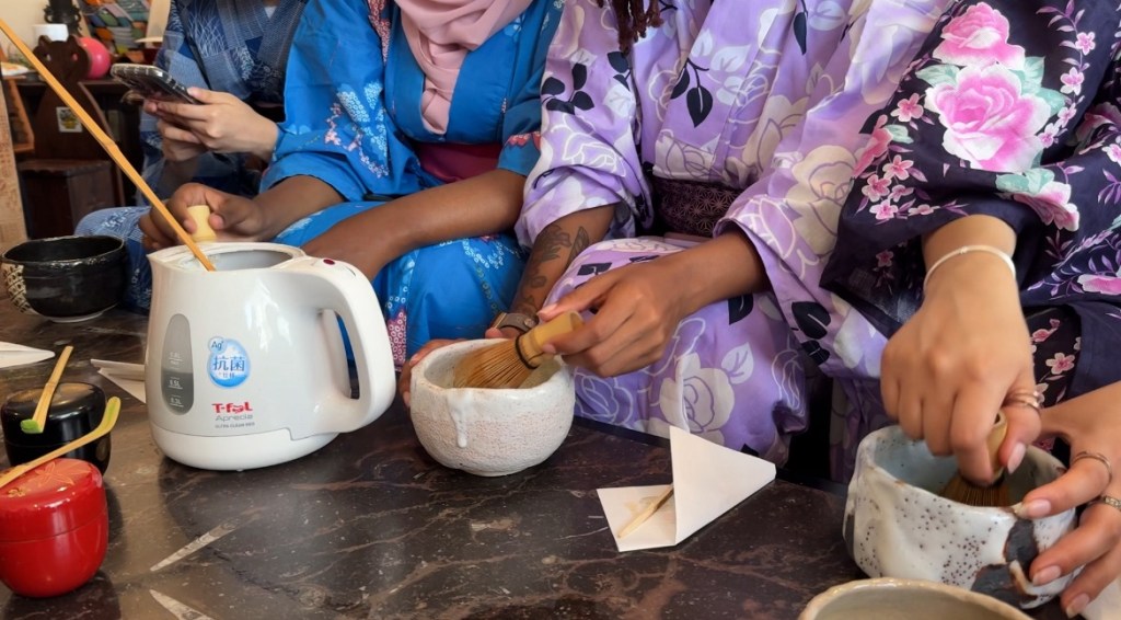 You look so pretty!! Thank you for minding your manners while in another country! 🤦🏽♀️😂 Matcha has to be mixed thoroughly! I like it when it mixed with something sweet it kinda balances out. Now you can come home and teach me how to make it! 😁